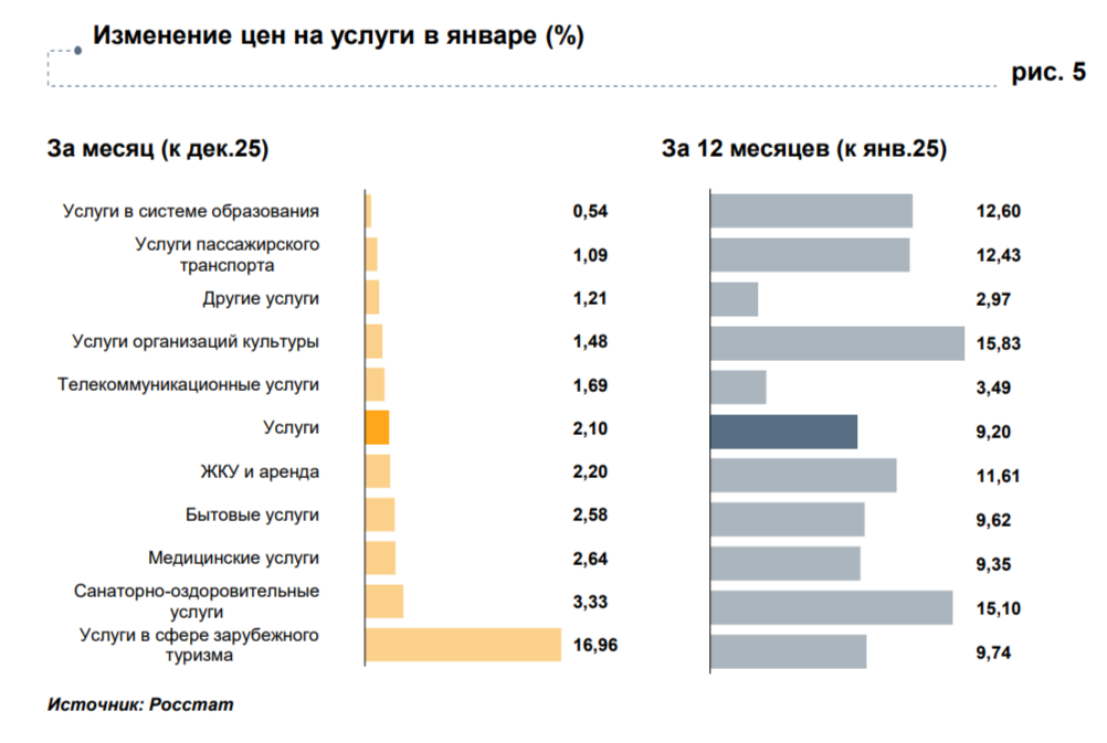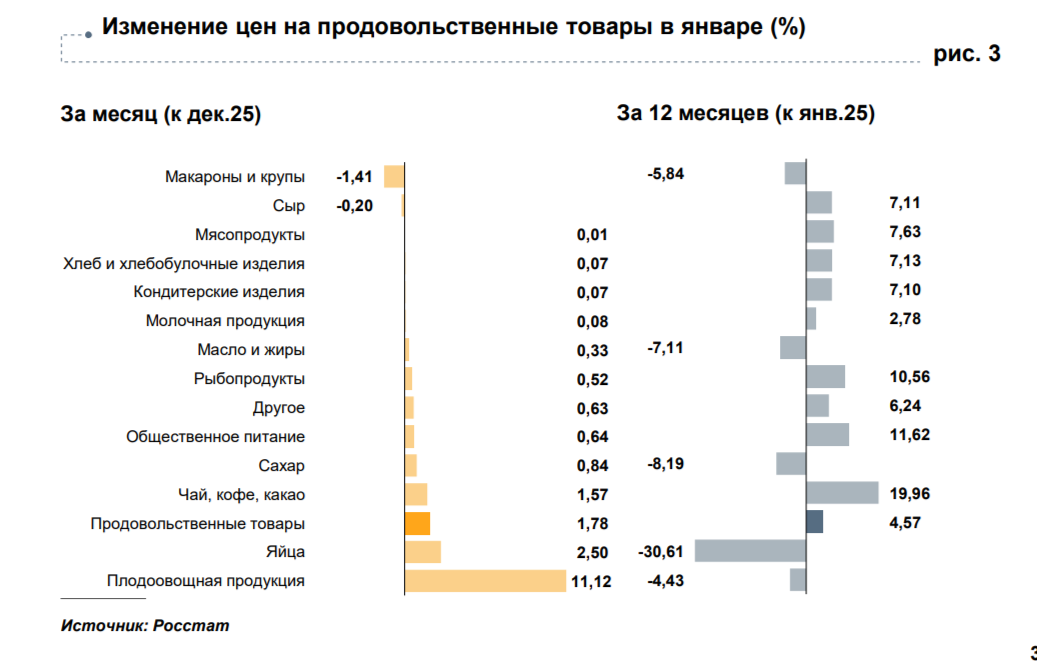Наибольший рост цен наблюдался в категориях овощей, книг, бытовой техники, парфюмерии и зарубежного туризма. Овощи подорожали на 11,12%, причем существенный вклад внесли огурцы, чьи цены бьют рекорды. В Центробанке объясняют это ростом затрат производителей на отопление и электроэнергию из-за аномальных морозов, а также увеличением расходов на хранение урожая. Несмотря на январский скачок, за год овощи в среднем стали дешевле.