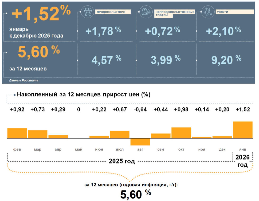 В январе годовая инфляция в регионе составила 5,6%, что ниже общероссийского уровня в 6%.