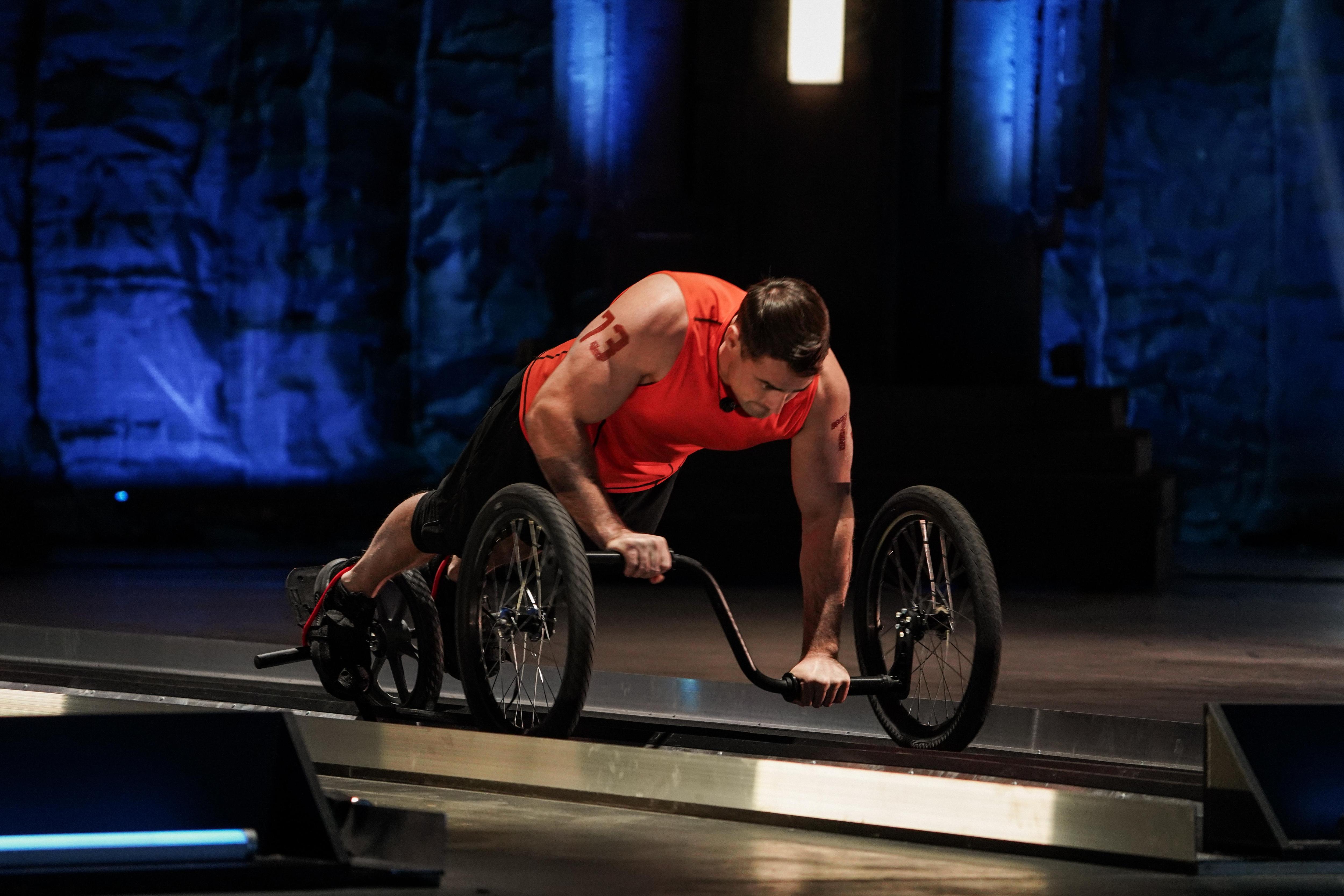 Испытанием на выбывание стало «Статическое удержание между стенами», где атлетам нужно было как можно дольше удерживаться между двумя стенами, не касаясь пола.