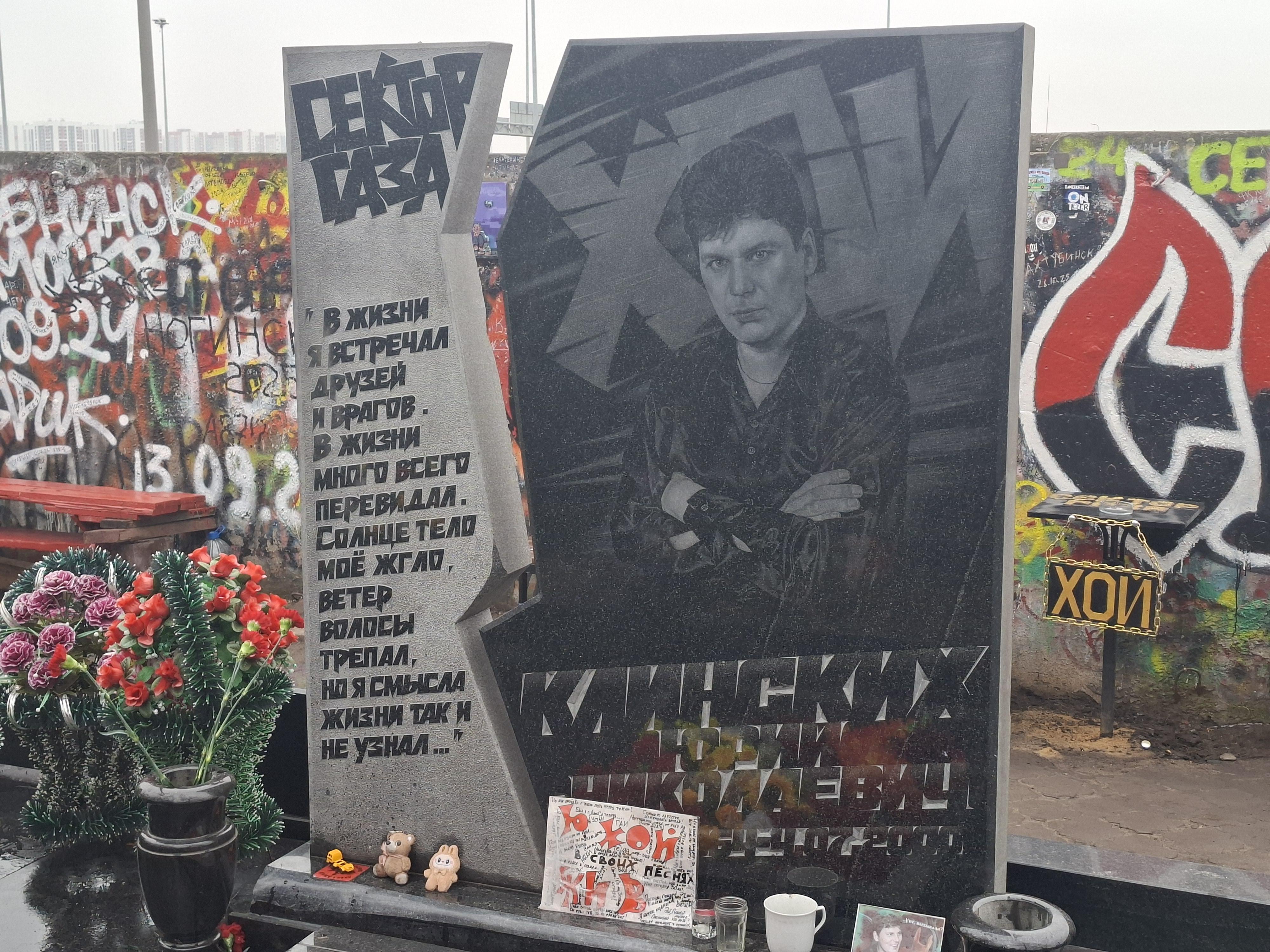 Могила лидера группы «Сектор Газа» Юрия Хоя находится на Левобережном кладбище Воронежа.