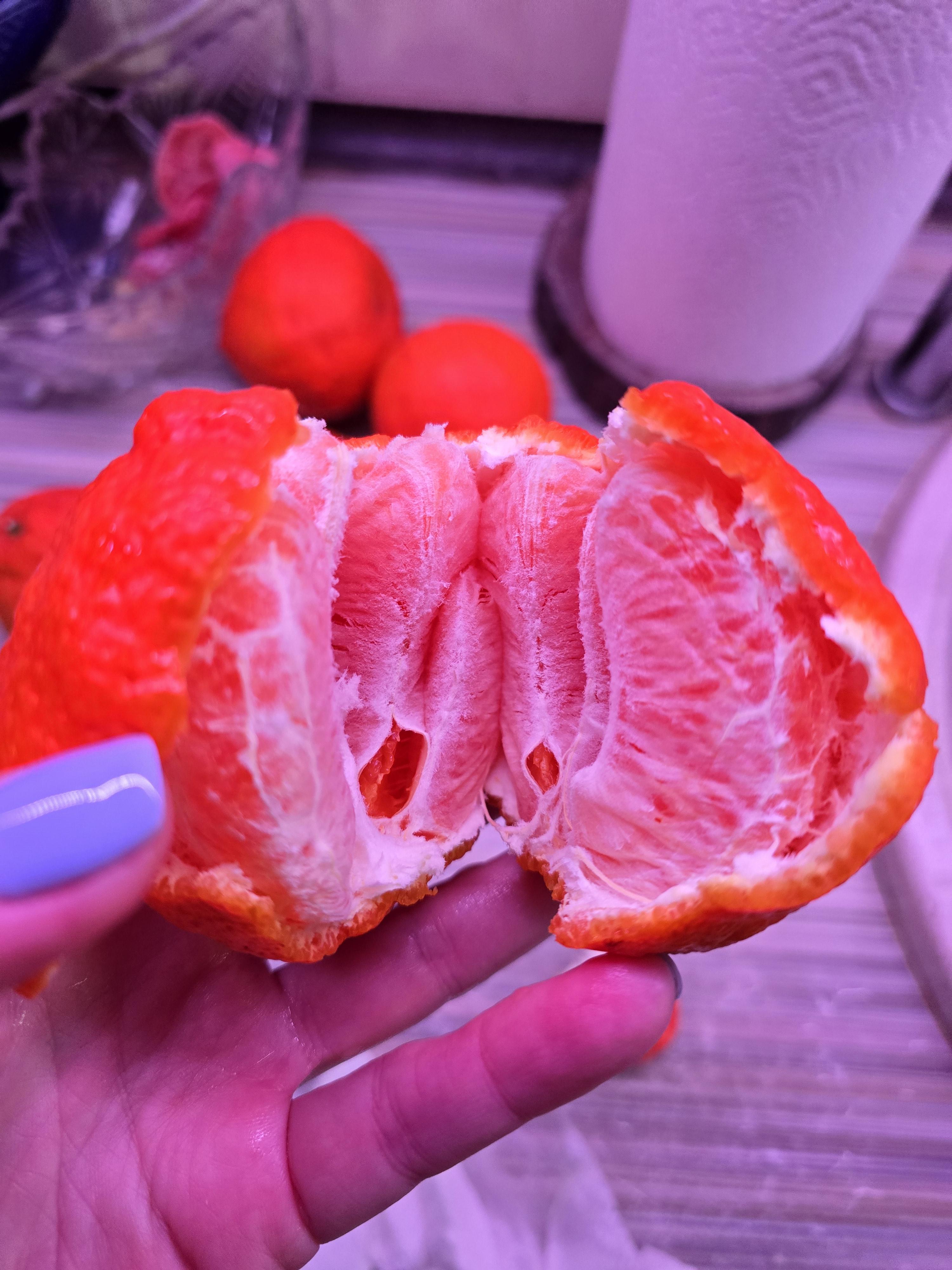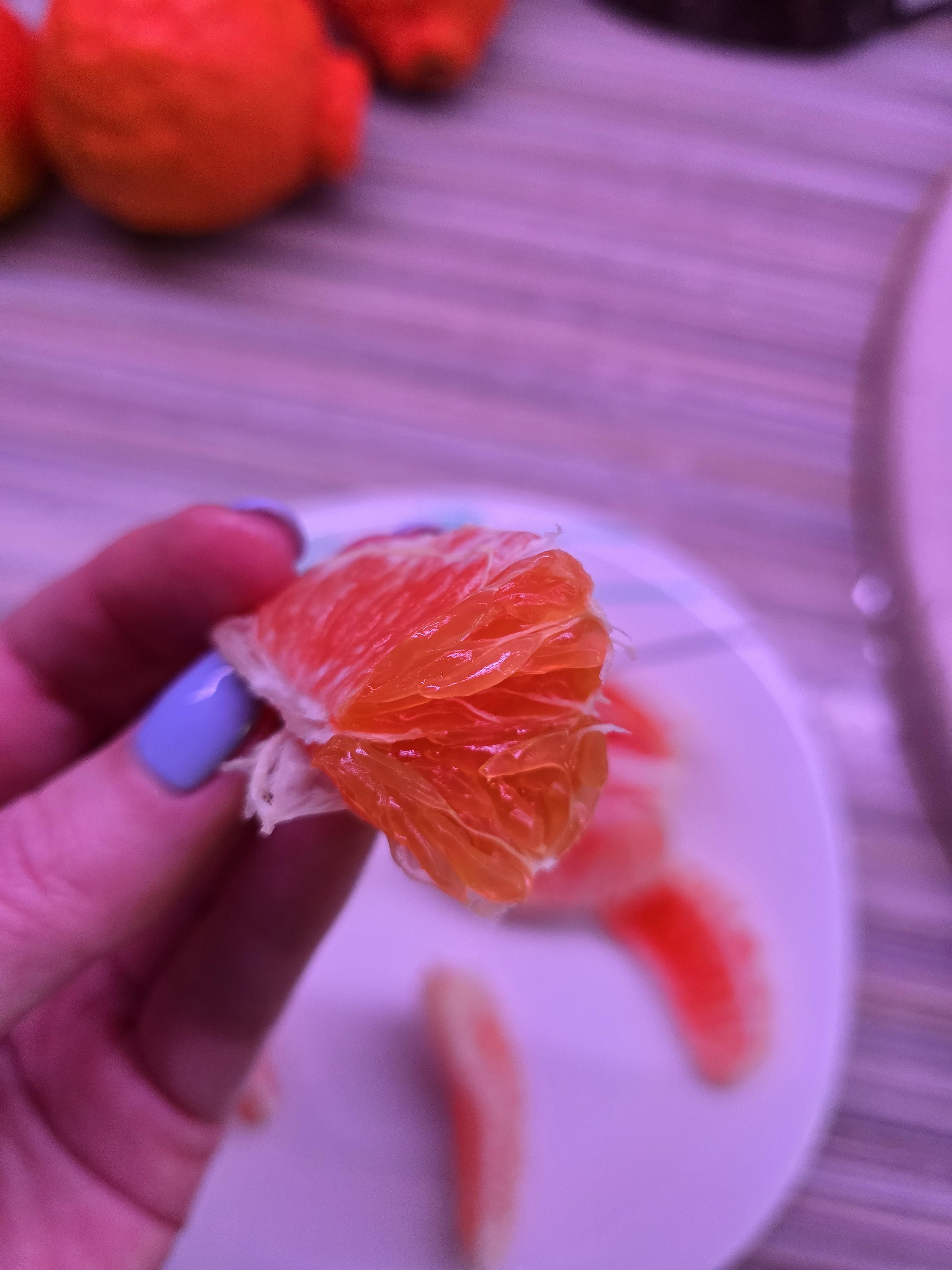 Чистится халлабон легко — кожура часто снимается почти цельным куском, не оставляя белых волокон. Запах у фрукта сильный, экзотический и заметно отличается от аромата привычных апельсинов или мандаринов.