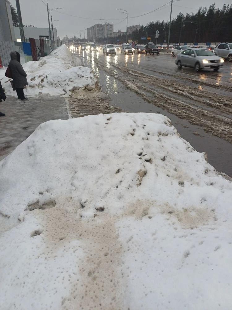 Жители города также жалуются на неубранный Московский проспект, где у остановок общественного транспорта образовались обширные лужи. Пешеходам сложно передвигаться из-за скользкой снежной массы.
