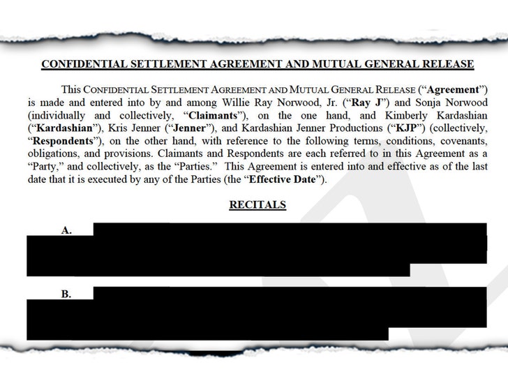 Документ, подписанный Ким, её матерью Крис, Ray J и его матерью Соней Норвуд в апреле 2023 года, называется «Конфиденциальное соглашение о урегулировании и взаимном освобождении от обязательств». В нём стороны договорились не порочить друг друга. Также Ray J согласился не привлекать к ответственности стриминговый сервис и медиакомпанию, на котором выходит шоу «The Kardashians».