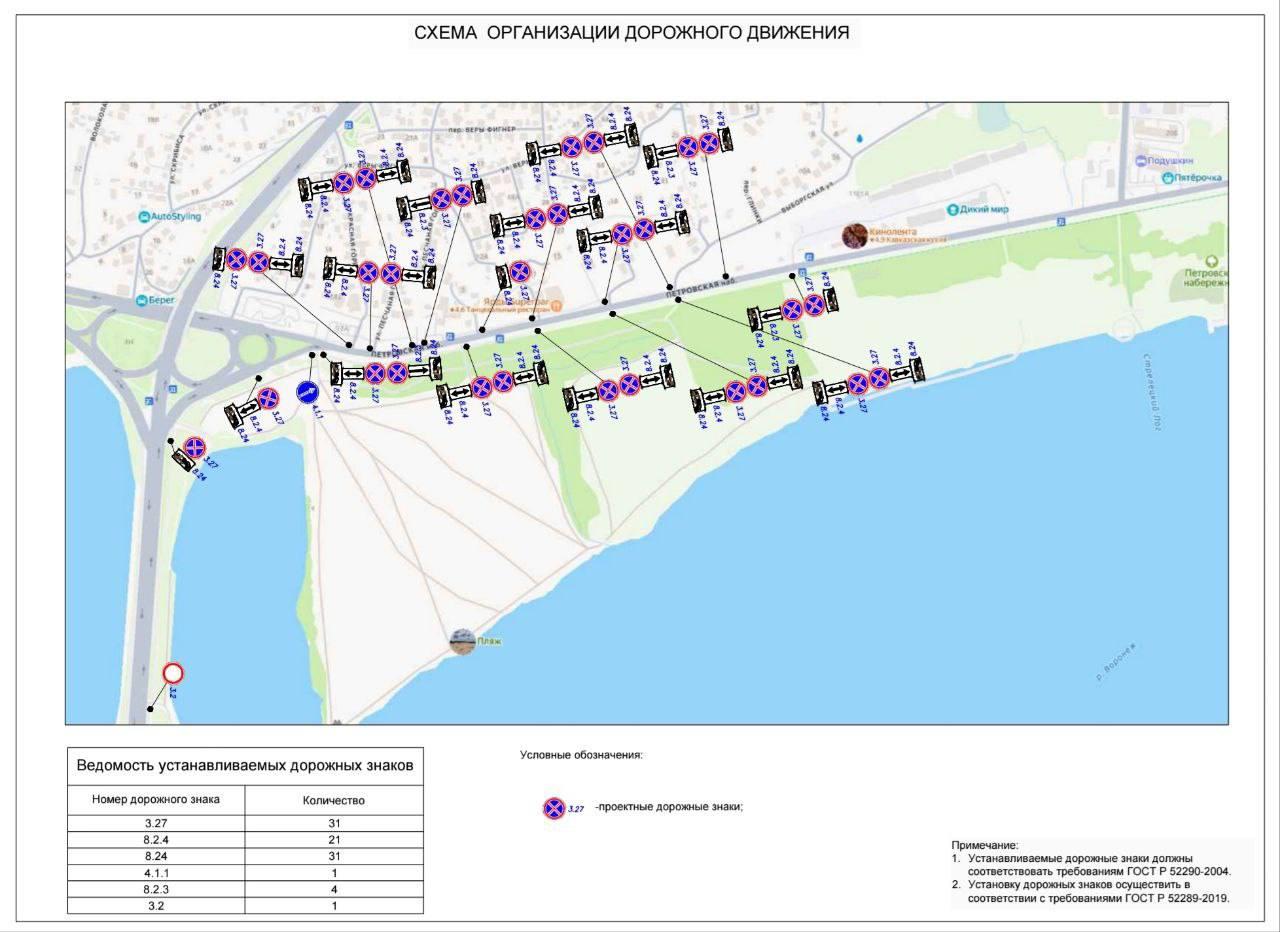 - Парковка на участке от съезда с ВоГРЭСовского моста до остановки «Петровская набережная», а также в обратном направлении — от дома №11 по Петровской набережной до улицы Кубанская гора.