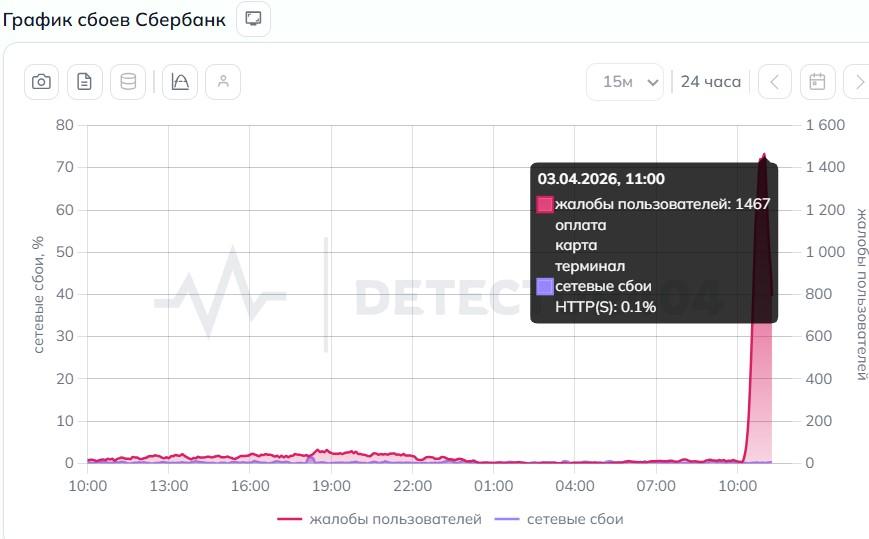 При этом мобильное приложение Сбера на некоторых устройствах продолжало работать, позволяя совершать переводы. Однако по данным сервиса Downdetector, на 10:55 поступило 1467 жалоб от пользователей из разных регионов России, причём 44% из них касались мобильного приложения.