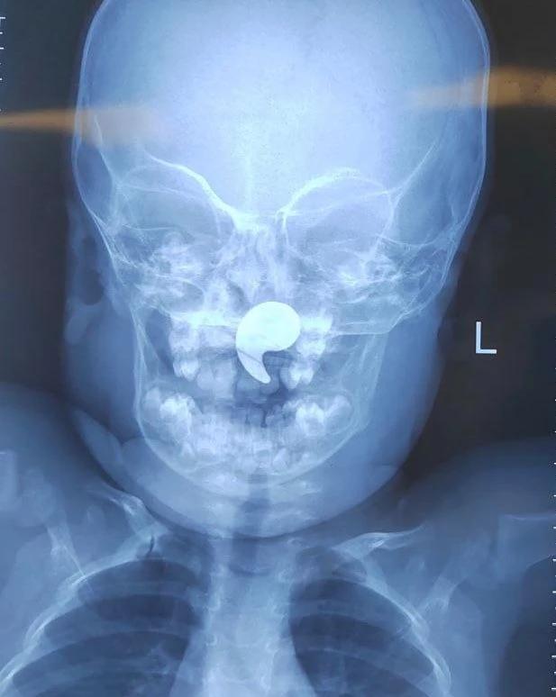 Как выяснилось, малышка играла с магнитным элементом в форме запятой и проглотила его. Мать попыталась извлечь предмет пальцем, но нечаянно протолкнула его глубже — в носоглотку.