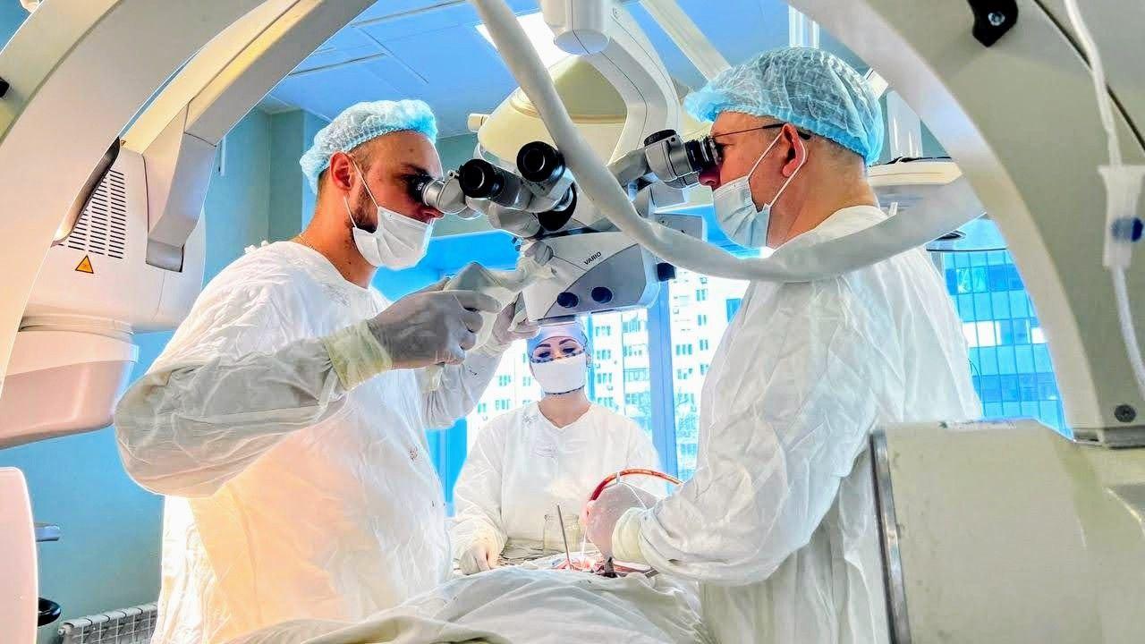 Нейрохирурги выполнили сложную операцию, так как повреждение затронуло позвоночник на двух уровнях. С помощью навигационной станции и операционного микроскопа в тела позвонков были введены специальные винты, после чего врачи смонтировали фиксирующую конструкцию. Это обеспечило надежную стабилизацию сломанных сегментов.