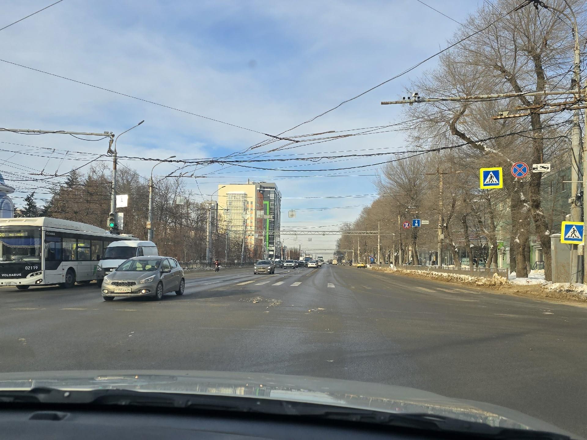 Авария случилась у дома № 68 в направлении центра города. Столкновение затронуло автомобили, двигавшиеся в левом и среднем рядах.