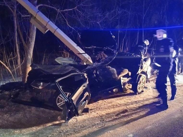 При столкновении с столбом погиб пассажир, водитель и девушка-пассажир получили травмы.