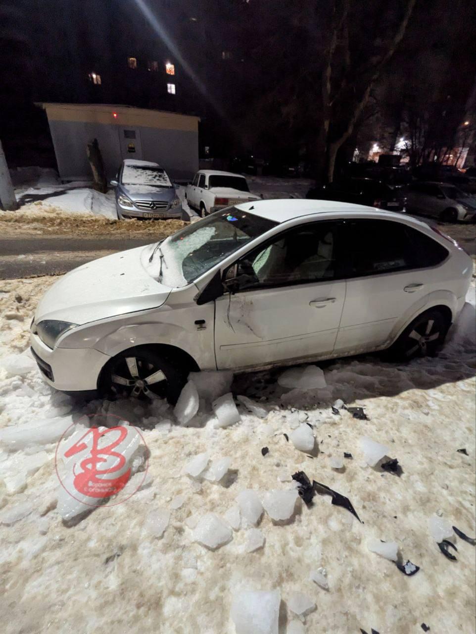На улице Димитрова в Воронеже снежная глыба, упавшая с кровли многоквартирного дома, повредила припаркованный автомобиль. Запись происшествия опубликовал местный телеграм-канал «Регион-36».