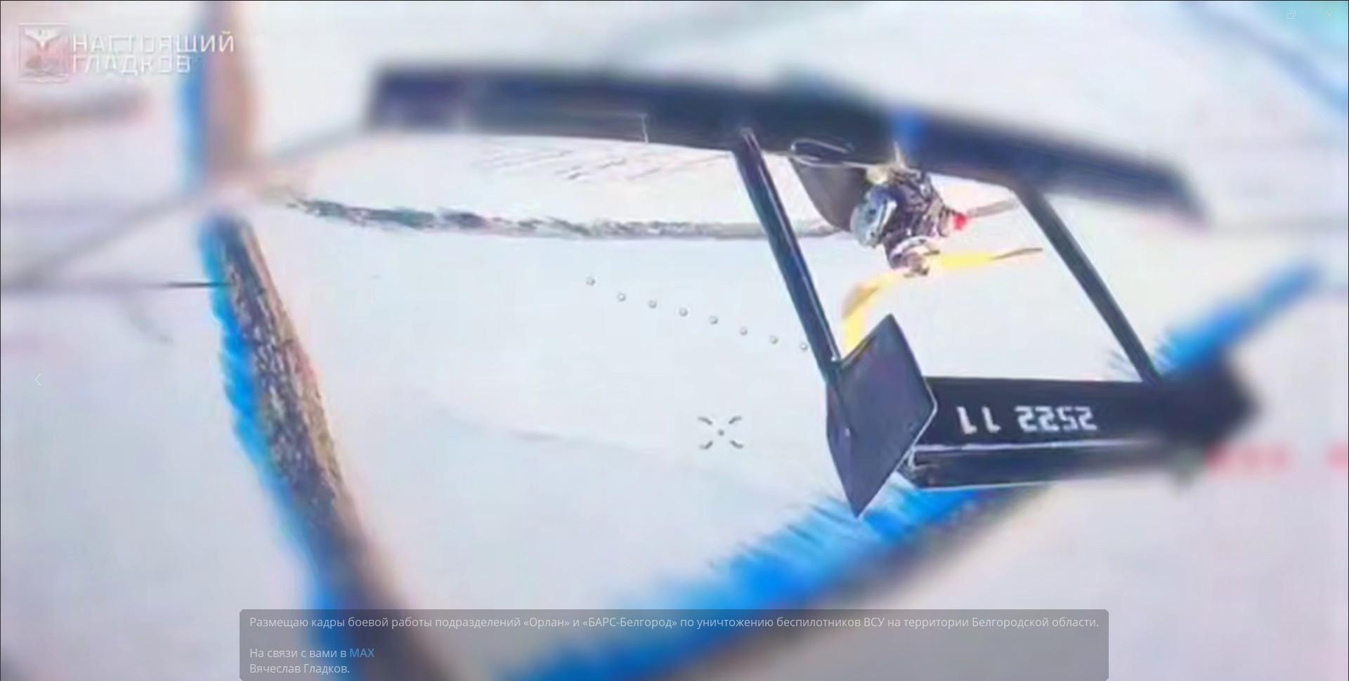 Губернатор Белгородской области Вячеслав Гладков разместил в своём телеграм-канале кадры, на которых российские военные уничтожают беспилотники Вооружённых сил Украины, готовившиеся атаковать мирное население. Эта видеозапись является уникальной, поскольку представляет собой внутреннюю служебную фиксацию действий подразделений «Орлан» и «БАРС-Белгород» по перехвату украинских дронов. Зритель видит процесс точно так, как его воспринимают сами бойцы: обнаружение беспилотника, захват цели, сопровождение и открытие огня. В момент успешного поражения один из военных восклицает: «А-а-а, хорош!»