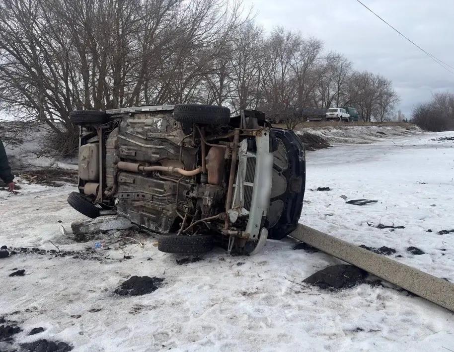 В Воронежской области автомобиль врезался в опору и упал в кювет