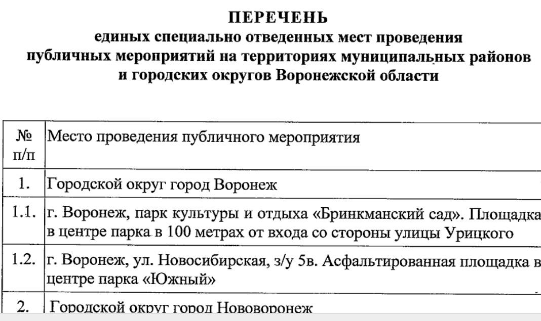 Проведение публичных мероприятий в Воронеже теперь допускается только на двух официальных площадках.