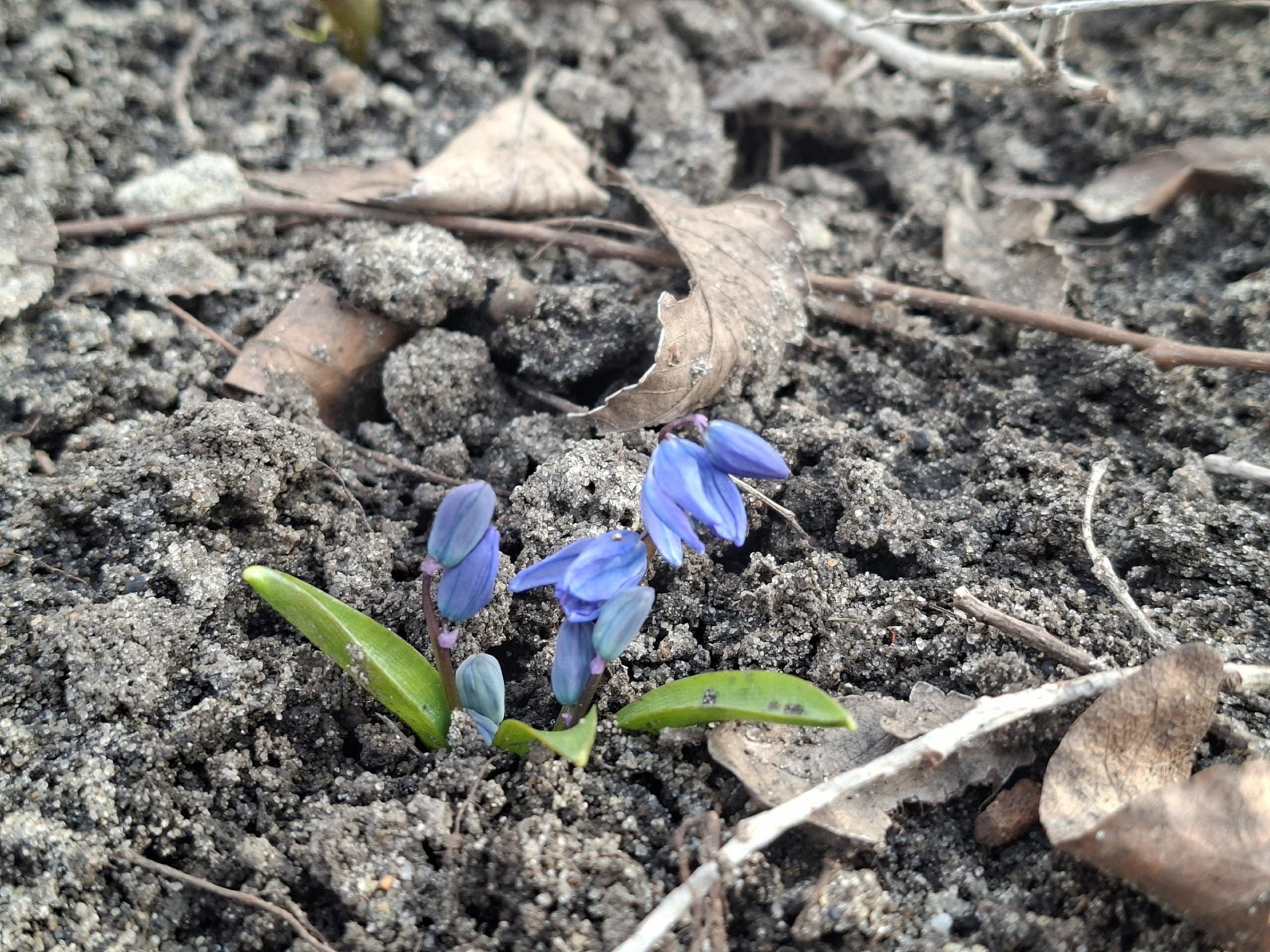 На прогретых солнцем участках уже можно увидеть первые пролески