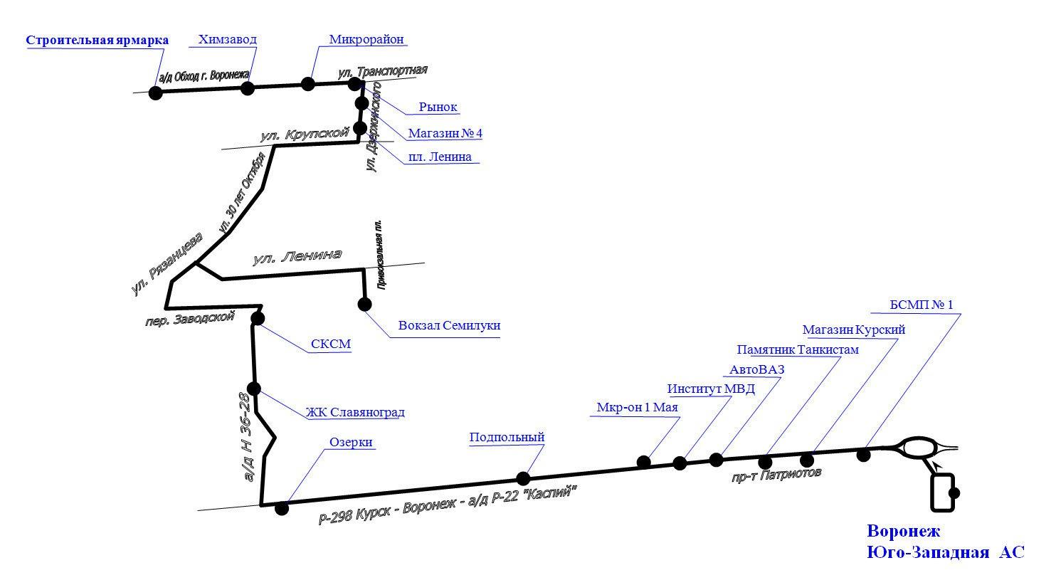 Схема движения автобуса №122 «Воронеж — Семилуки».