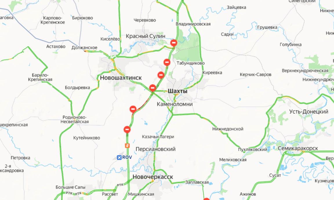 - Между Шахтами и Ростовом-на-Дону движение частично перекрыто из-за ремонтных работ, что вынуждает водителей стоять в километровых очередях.