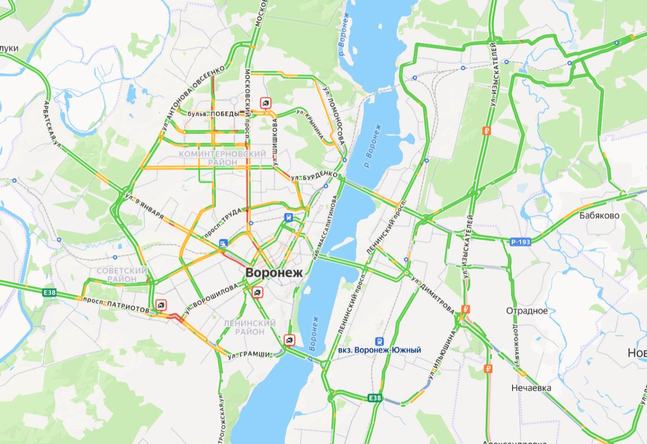Утром 12 февраля в Воронеже образовались многокилометровые заторы, особенно на Московском проспекте. Данные об этом предоставили «Яндекс. Карты».