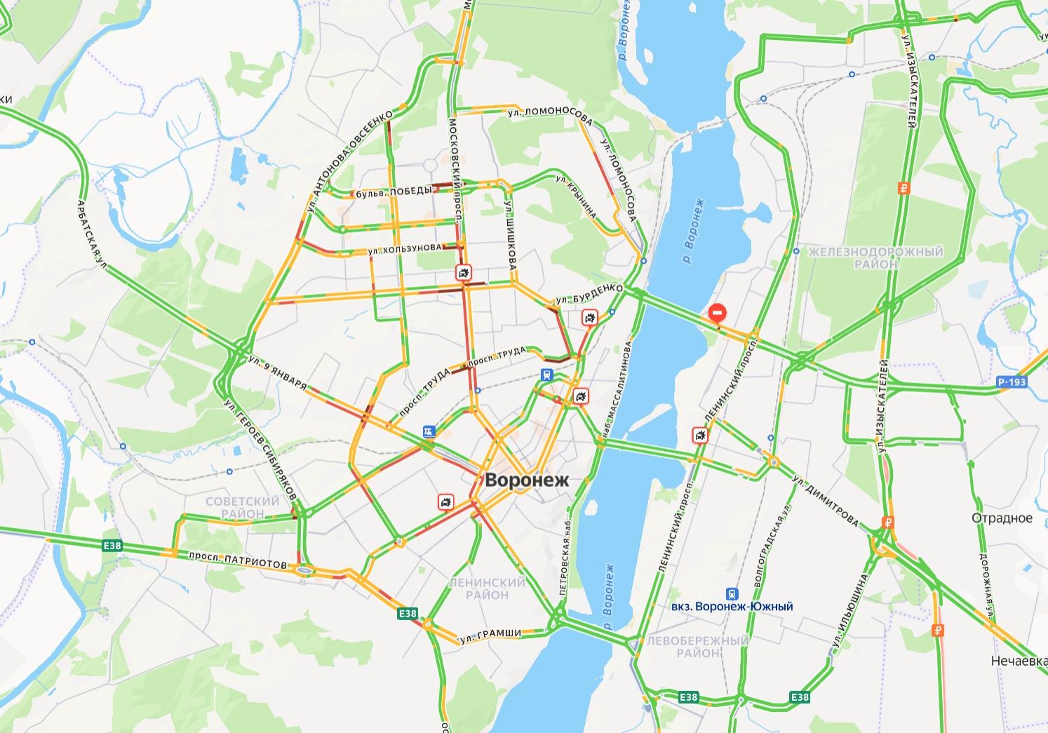 Утром в пятницу, 20 февраля, движение в Воронеже столкнулось с серьезными затруднениями. По информации «Яндекс.Карт», индекс пробок достиг отметки в 5 баллов.