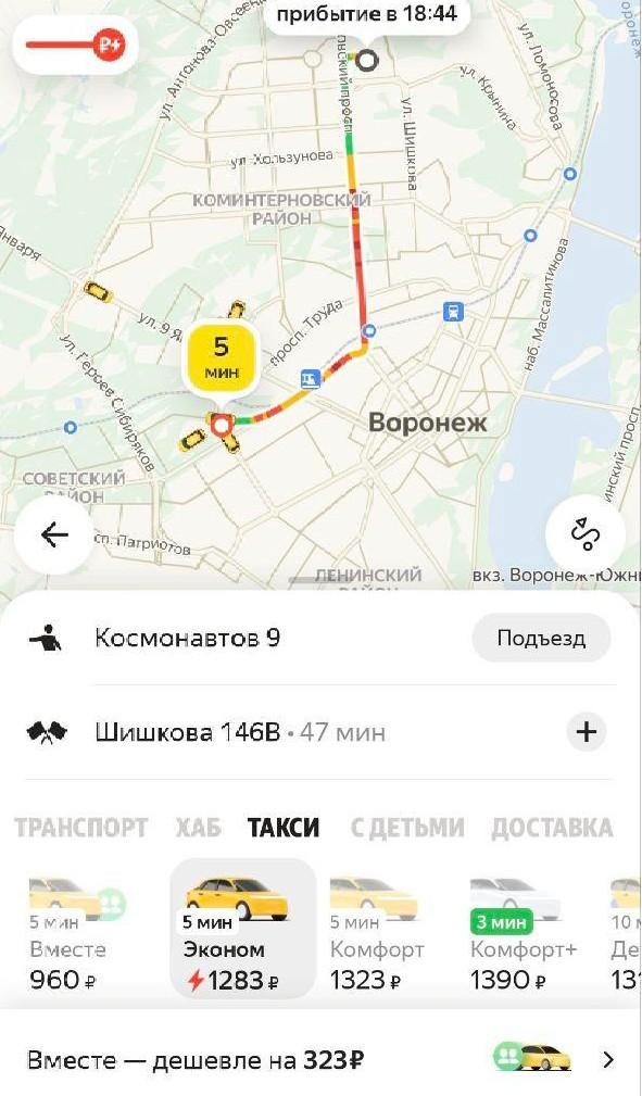 Средняя стоимость поездки на такси в Воронеже достигает тысячи рублей