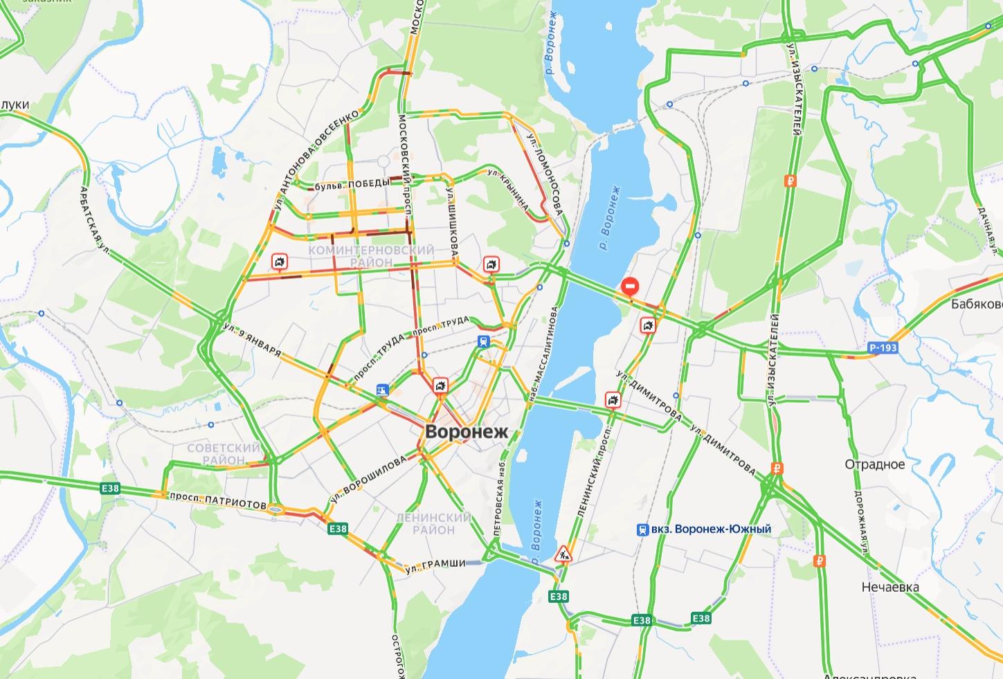 Согласно данным сервиса «Яндекс.Карты», утреннее движение в Воронеже в четверг было серьёзно затруднено. Уровень пробок составил 6 баллов.
