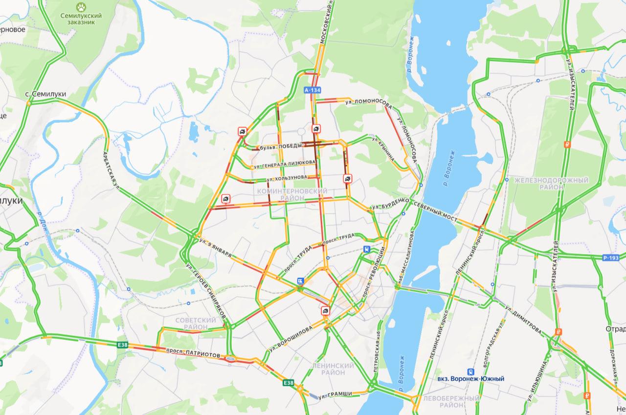 Утренние пробки в Воронеже получили максимальную оценку в семь баллов.
